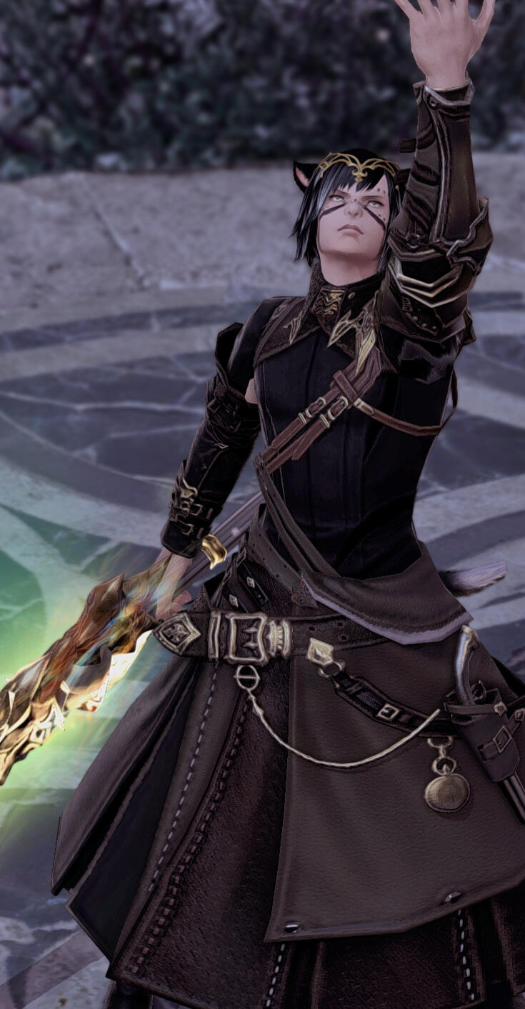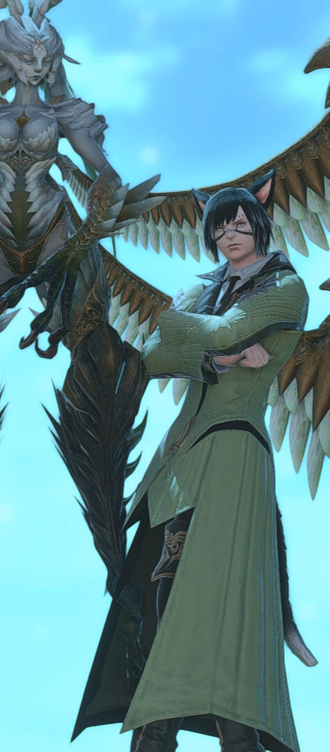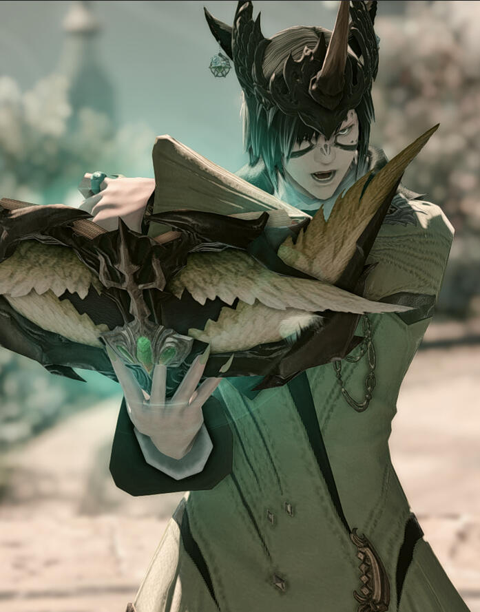 Many years passed, and no matter how much he practiced and studied, Vincent still could not complete his research. All attempts at a summoning came to nothing, and he grew frustrated, wondering if there was something he was missing. In the meantime, the Ixal of Coerthas had summoned their goddess, Garuda, and Vincent had been ordered to vanquish her. Though Vincent was certain that this was another attempt to get him killed and out of the Temple Knights' hair, he had no choice but to face her, and to slay her.Much to the chagrin of his peers, Vincent came back with Garuda's shimmering wing in hand, and her golden blood on his lance. This was it; this was proof of his worth. He was more than just the Azure Dragoon. He had killed a god.It was that night, poring over his books once more, that Vincent finally managed a summoning. Garuda's wing shimmered and disappeared, and in its place formed a green, bird-like creature. The very thing that Vincent's tomes had described all these years: Garuda-Egi.After that, summoning came easily to him. He was never able to summon any of the other Egis, but he found that Garuda proved to be more than enough.As the Dragonsong War came to a close, Vincent left Ishgard for the first time in sixteen years, at Estinien's side, as always. The pair of them traveled together for two years, until they both joined up with the Scions of the Seventh Dawn. It was there that Vincent reunited with his childhood friends, and in doing so, found a better, more comfortable place in the world.